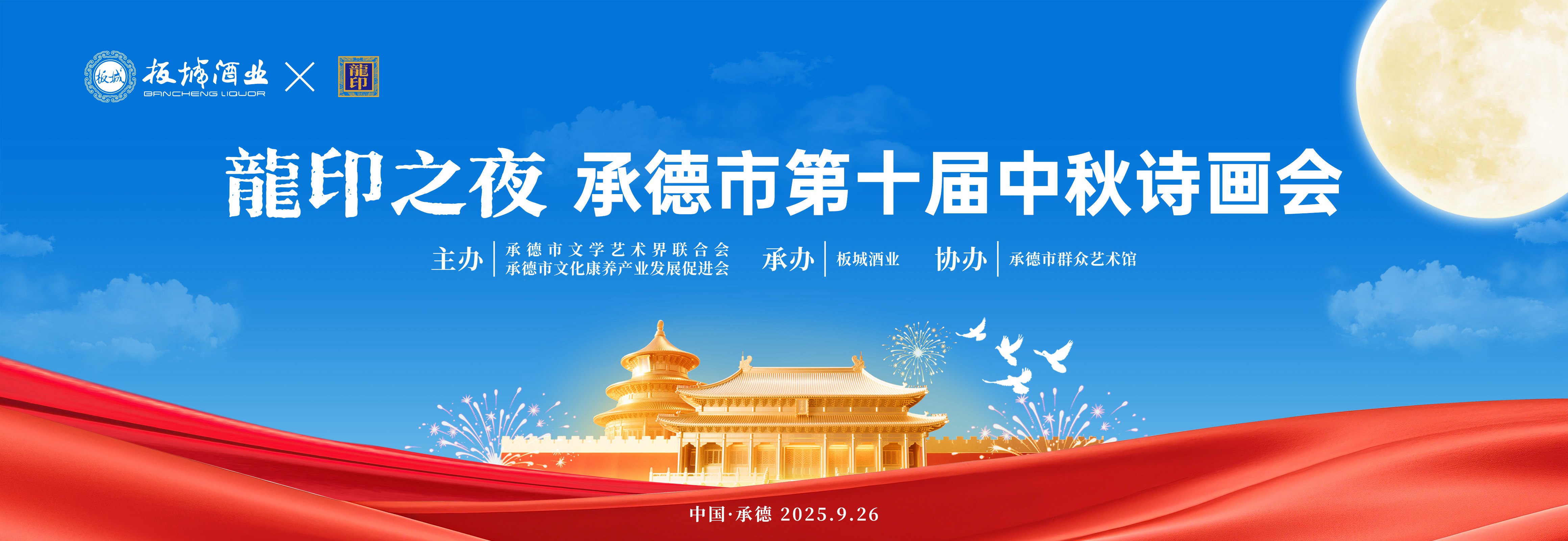 9月26日晚,由承德市文學(xué)藝術(shù)界聯(lián)合會、承德市文化康養(yǎng)產(chǎn)業(yè)發(fā)展促進會主辦;板城酒業(yè)承辦;承德市群眾藝術(shù)館協(xié)辦的“龍印之夜——承德市第十屆中秋詩畫會”在板城酒業(yè)隆重舉行。