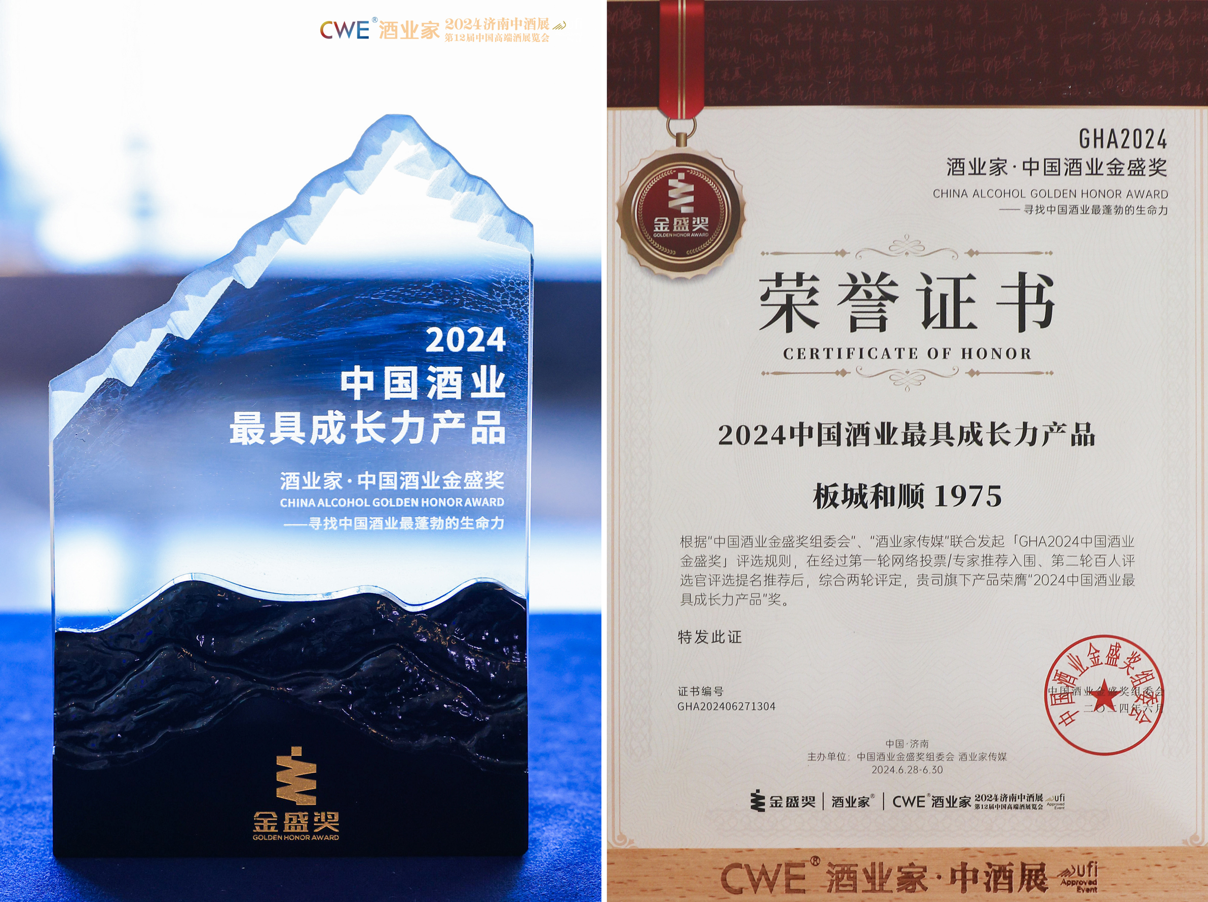 板城和順1975在本次比賽中榮獲“2024中國酒業(yè)最具成長力產(chǎn)品”。此項榮譽的獲得,是白酒行業(yè)與白酒市場對板城和順1975品質(zhì)的認可與鼓勵。