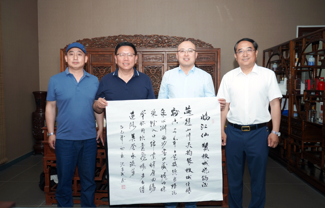 訪問期間,沈重武副會(huì)長現(xiàn)場揮毫潑墨,向板城酒業(yè)贈(zèng)送書畫作品《臨江仙·贊板城燒鍋酒》,表達(dá)了其對(duì)板城酒業(yè)三百多年不間斷傳承的國家級(jí)非物質(zhì)文化遺產(chǎn)老五甑釀造技藝與“一店燒鍋兩朝御賜,乾隆妙對(duì)嘉慶天章”深厚歷史的稱贊。