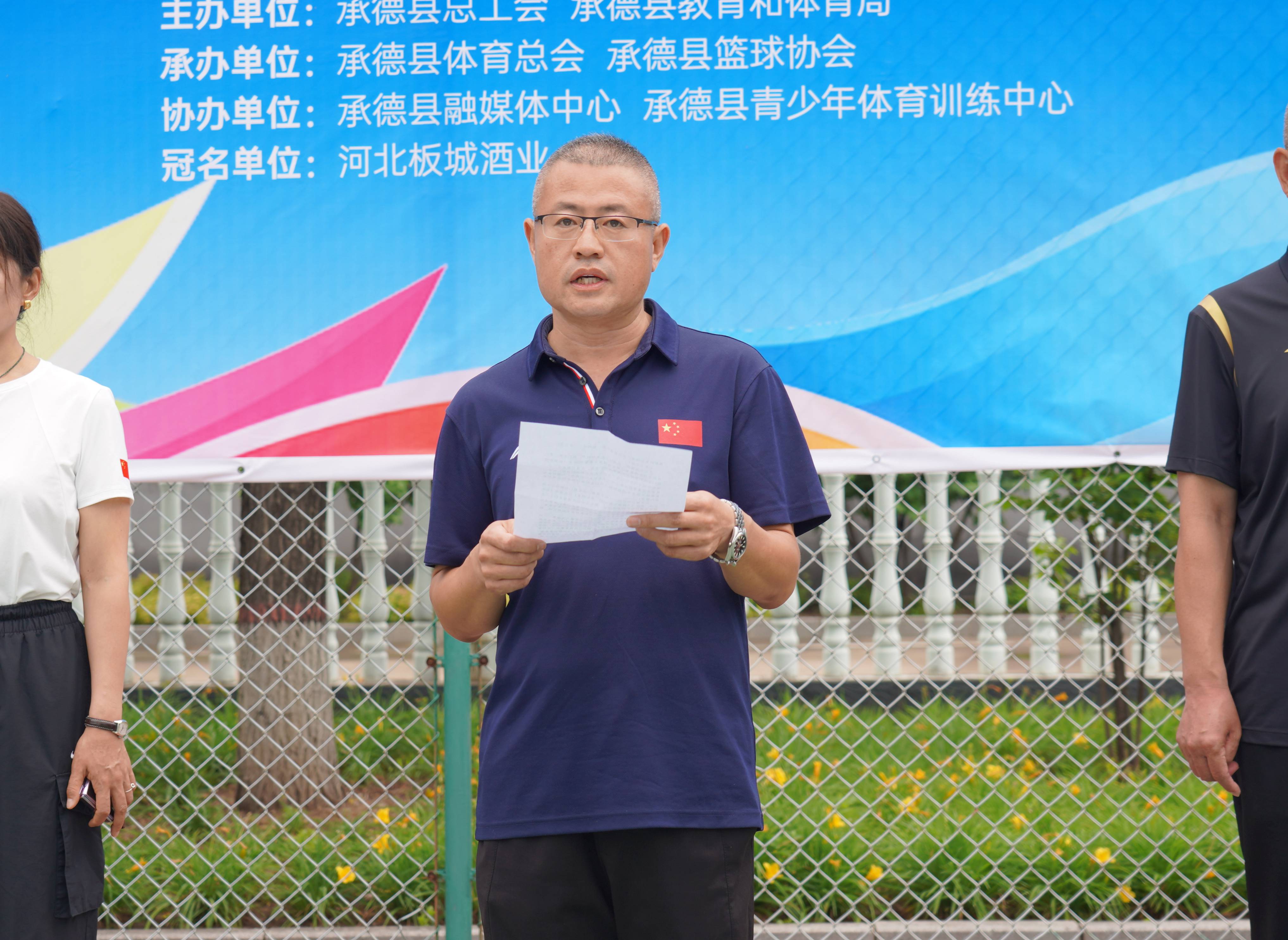 承德縣教育和體育局班子成員、體育工作指導(dǎo)中心主任朱瑞東,承德縣總工會(huì)黨組成員經(jīng)審委主任高文峰,板城酒業(yè)承德南部戰(zhàn)區(qū)和順部區(qū)域經(jīng)理胡聚偉,承德縣籃協(xié)協(xié)會(huì)會(huì)長(zhǎng)申國(guó)民,承德縣體育總會(huì)總召集人王子忠,承德縣青少年體育訓(xùn)練中心主任段連雪,承德縣安匠鎮(zhèn)人大副主席高靜,比賽裁判長(zhǎng)宋文劍出席本次開(kāi)幕式。