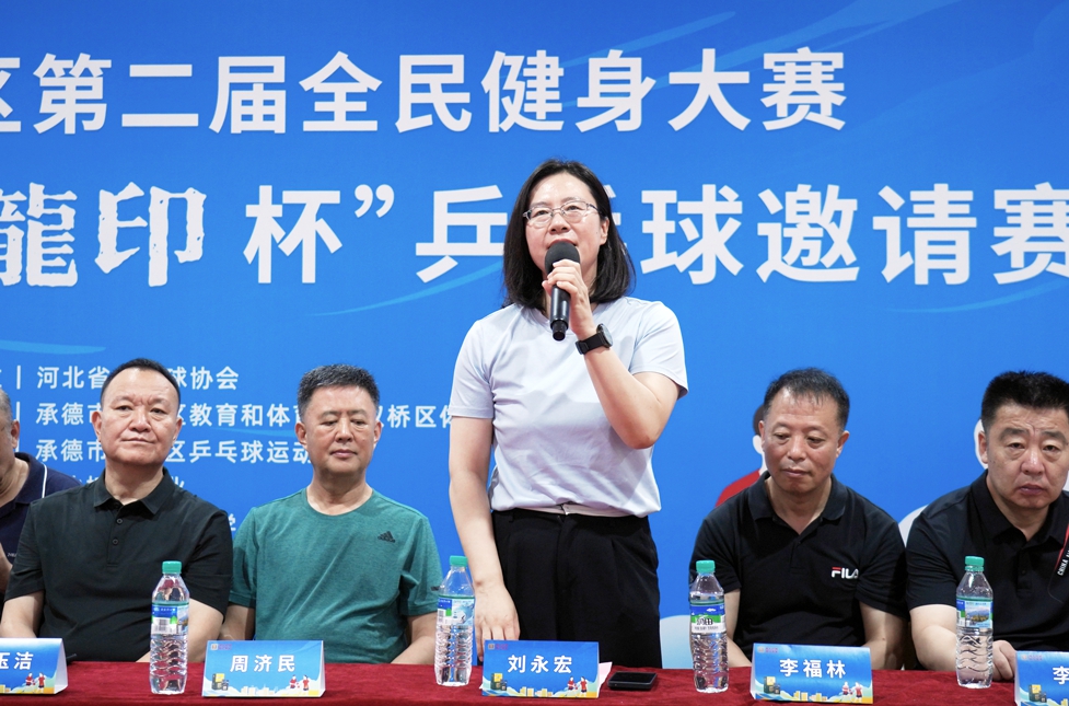 雙橋區(qū)教育和體育局局長(zhǎng)李建致辭,他講到:“舉辦此次乒乓球賽是為廣大市民搭建了健身平臺(tái),為六省的乒乓球運(yùn)動(dòng)員提供了相互交流的機(jī)會(huì),也是推動(dòng)我區(qū)乒乓球運(yùn)動(dòng)發(fā)展,滿足我區(qū)人民群眾健身、健康需求的重要舉措,希望大家能積極享受比賽,感受體育魅力。”